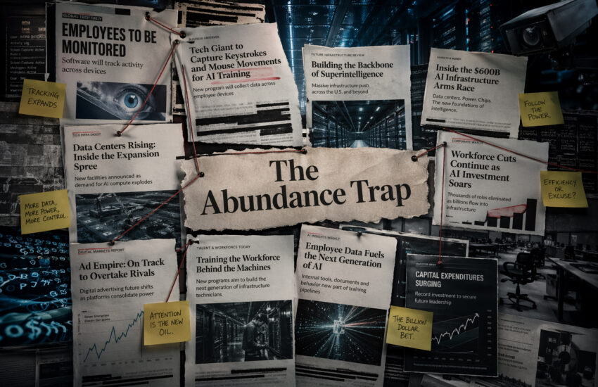 The one where AI creates abundance for everyone? Or the one where the companies building the abundance are still cutting roles, monitoring workers, compressing teams and turning daily work into training data all while capturing more power (at every level). Reminder: This isn’t a hit piece… it’s a pattern that we can trace. The same organizations promising that AI will unlock new levels of prosperity are often the ones showing us what happens first when intelligence becomes cheaper: surveillance expands, labor gets squeezed, workflows get captured and efficiency becomes the language that makes subtraction sound strategic.